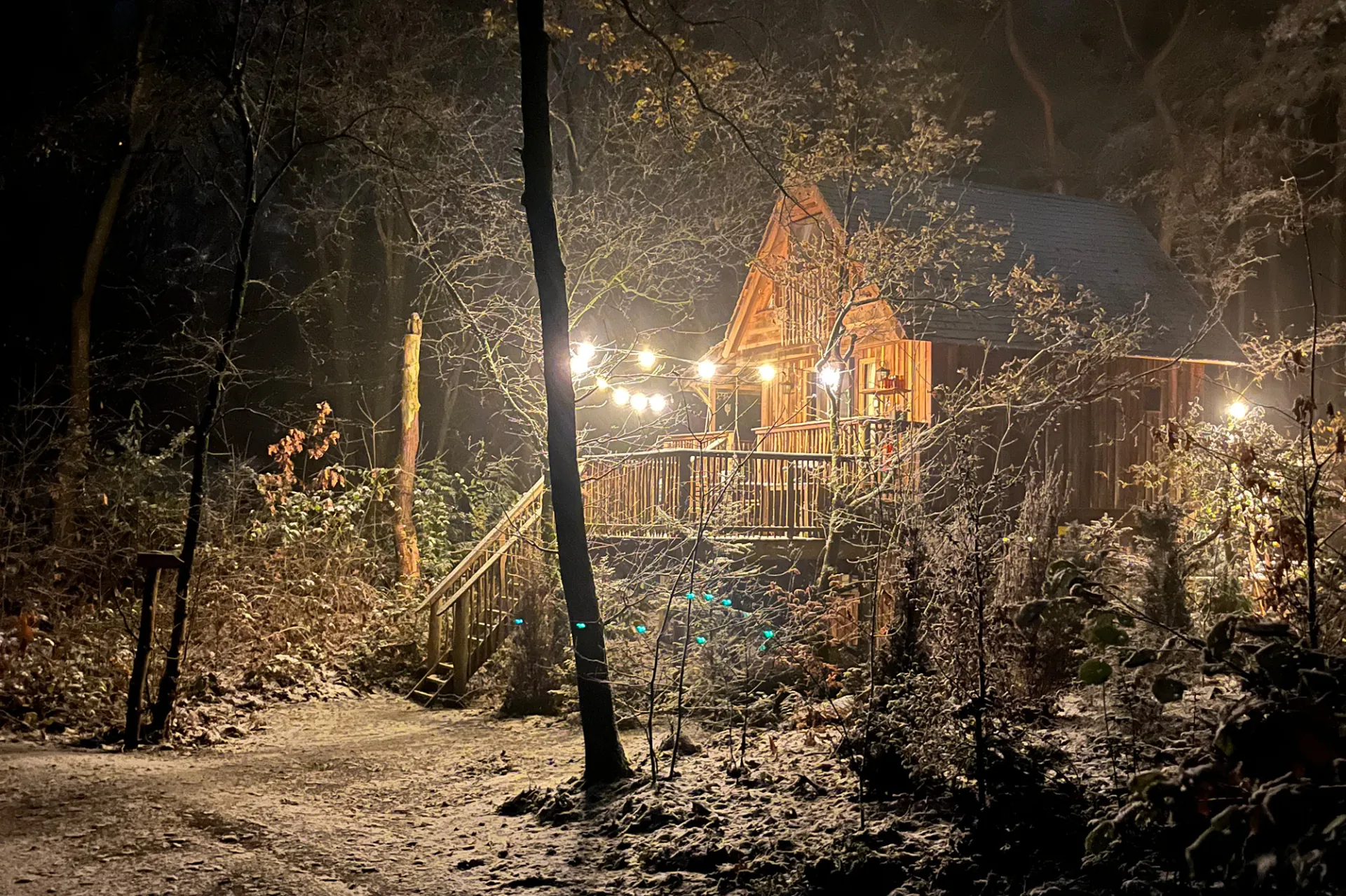 In de winter voelt Treelodge anders aan. Rustiger. De dagen zijn stiller, en je hebt het gevoel dat de tijd hier in ons bos net iets trager gaat. Het bos wordt stiller. Je hoort je eigen stappen weer. ’s Morgens hangt er mist tussen de bomen en ’s avonds wordt het gezellig vroeg donker. Het bos is in rustmodus. Je lijf schakelt vanzelf een versnelling lager. Minder prikkels, minder afleiding, meer aandacht voor wat echt telt.