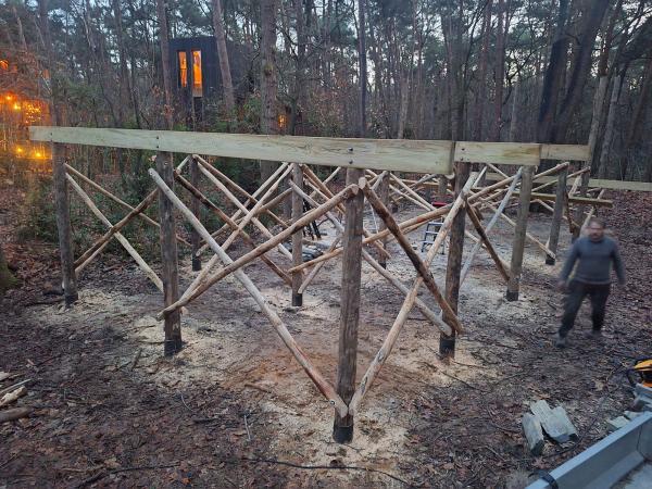 De komende maanden zal de nieuwe boomhut oprijzen uit de as van onze Bonte Specht, en gaan we van een werf naar een warme plek in ons bos. Met elke plank en balk die hier een plekje krijgt, komt het moment weer dichterbij waarop onze gasten kunnen komen genieten, vertragen en ontwaken tussen de bomen… heerlijk!